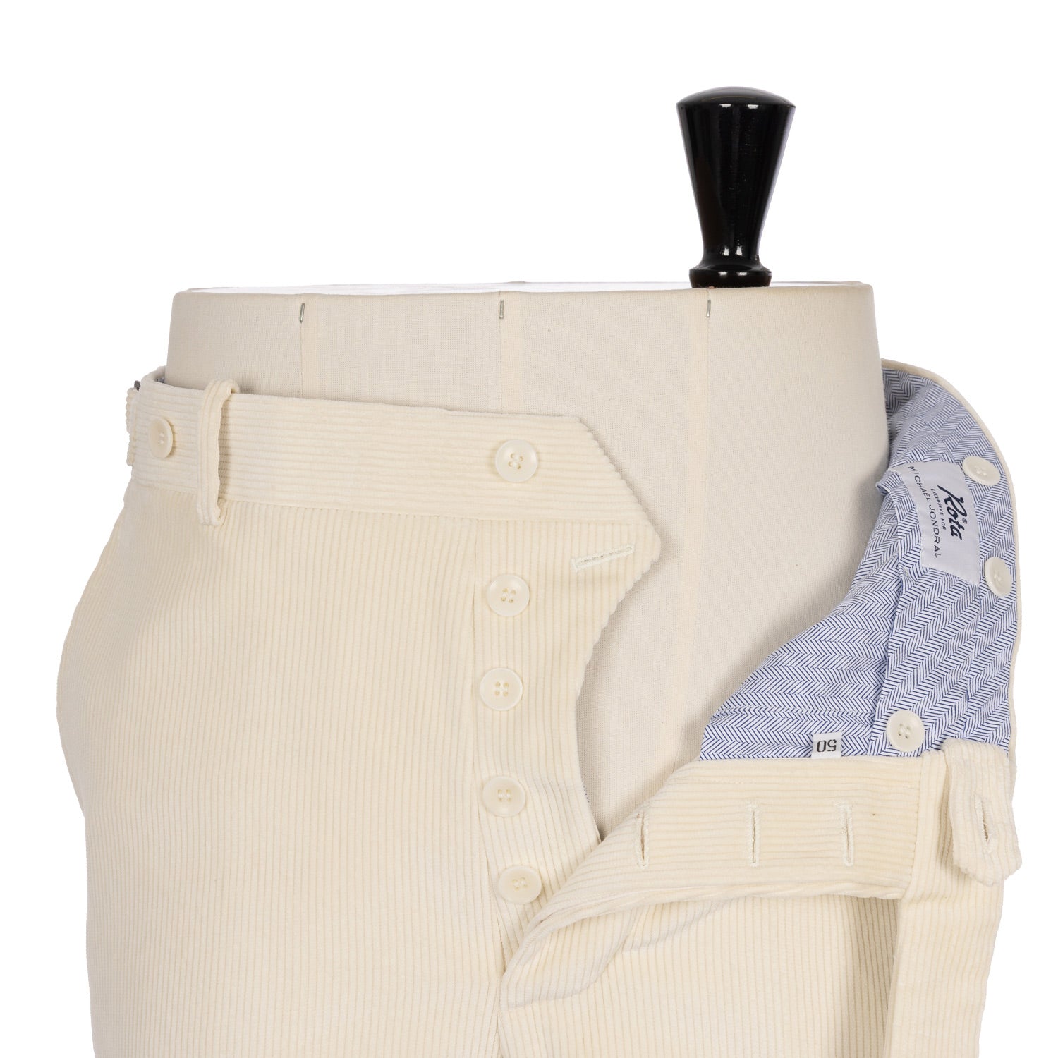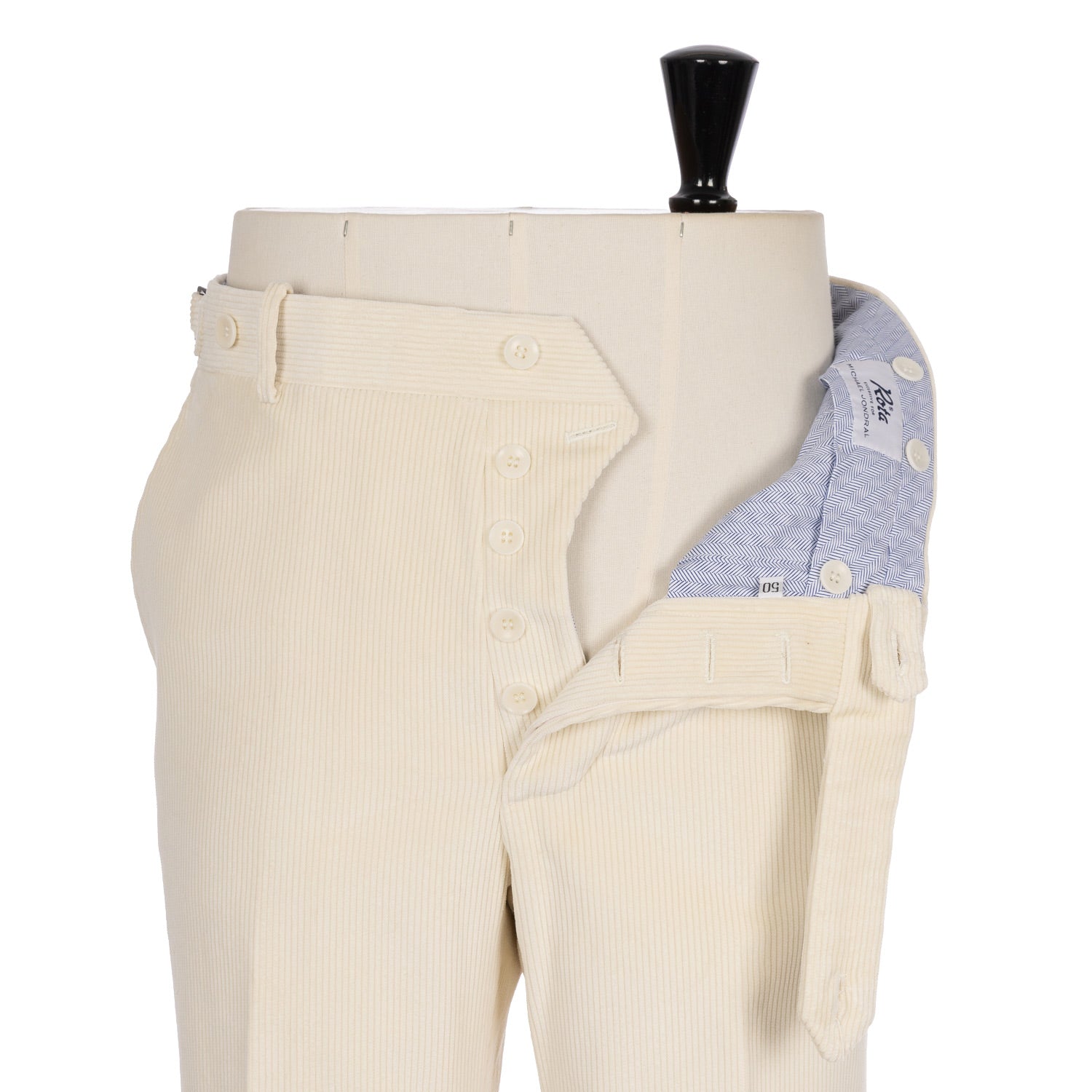 Exklusiv für Michael Jondral: Elfenbeinfarbene Hose aus Brisbane Moss 8 Whale-Baumwollcord - Rota Sartorial