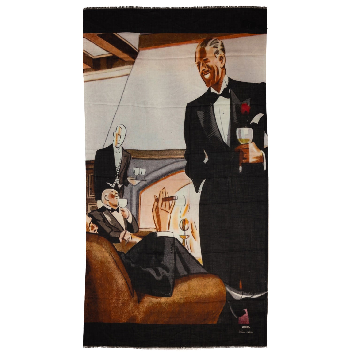 Das Muster "Black Tie Cocktail", interpretiert die Historie der neapolitanischen Gentlemen im abendlichem Smoking und wurde von einem, mit Familie Attolini befreundeten, Künstler entworfen.