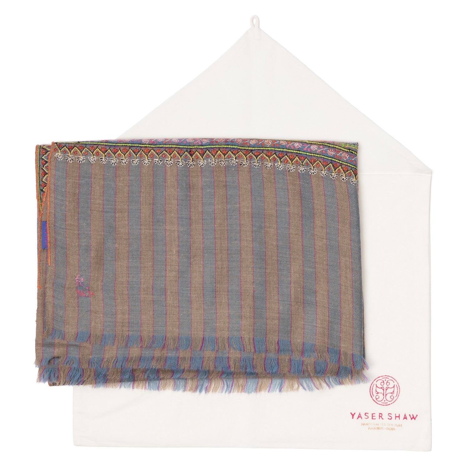 In historischer Tradition wird auf hölzernen Handwebstühlen gewoben und es wird von Hand bestickt. Das Weben obliegt in indischer Tradition den Frauen und die Männerhände besticken diese wundervollen Kunstwerke. Vom Auskämmen der Kaschmirwolle, bis zum fertigen Schal dauert es, ganz nach Größe, bis zu 9 Monate. Nach der Fertigstellung sticken die Handwerker ihre Initialen am Schalende ein und jeder Schal wird durch diesen gesamten Verlauf zu einem luxuriösen Unikat.