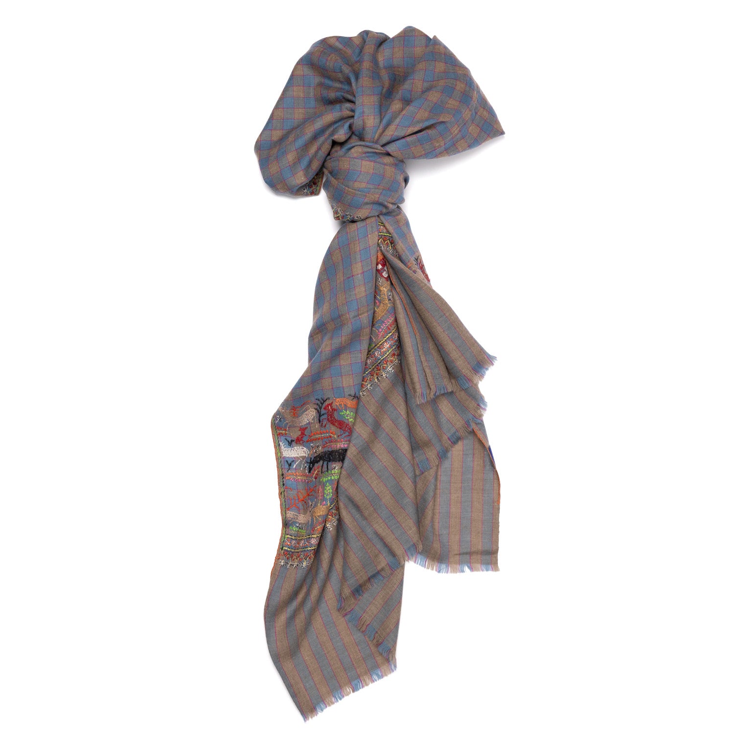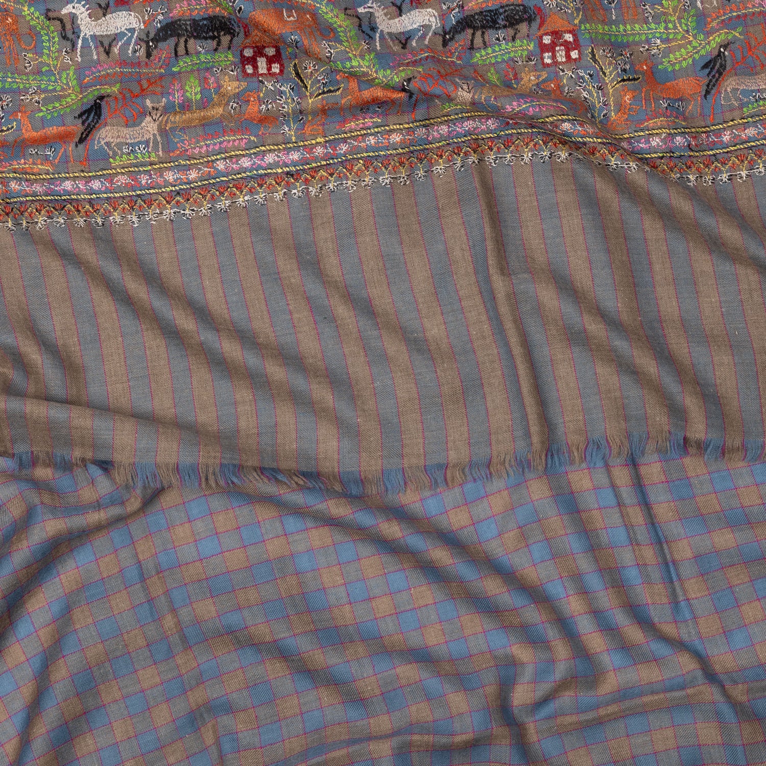 Schal "JAGALPURI" aus feinstem handbestickten Pashmina-Kaschmir - reine Handarbeit