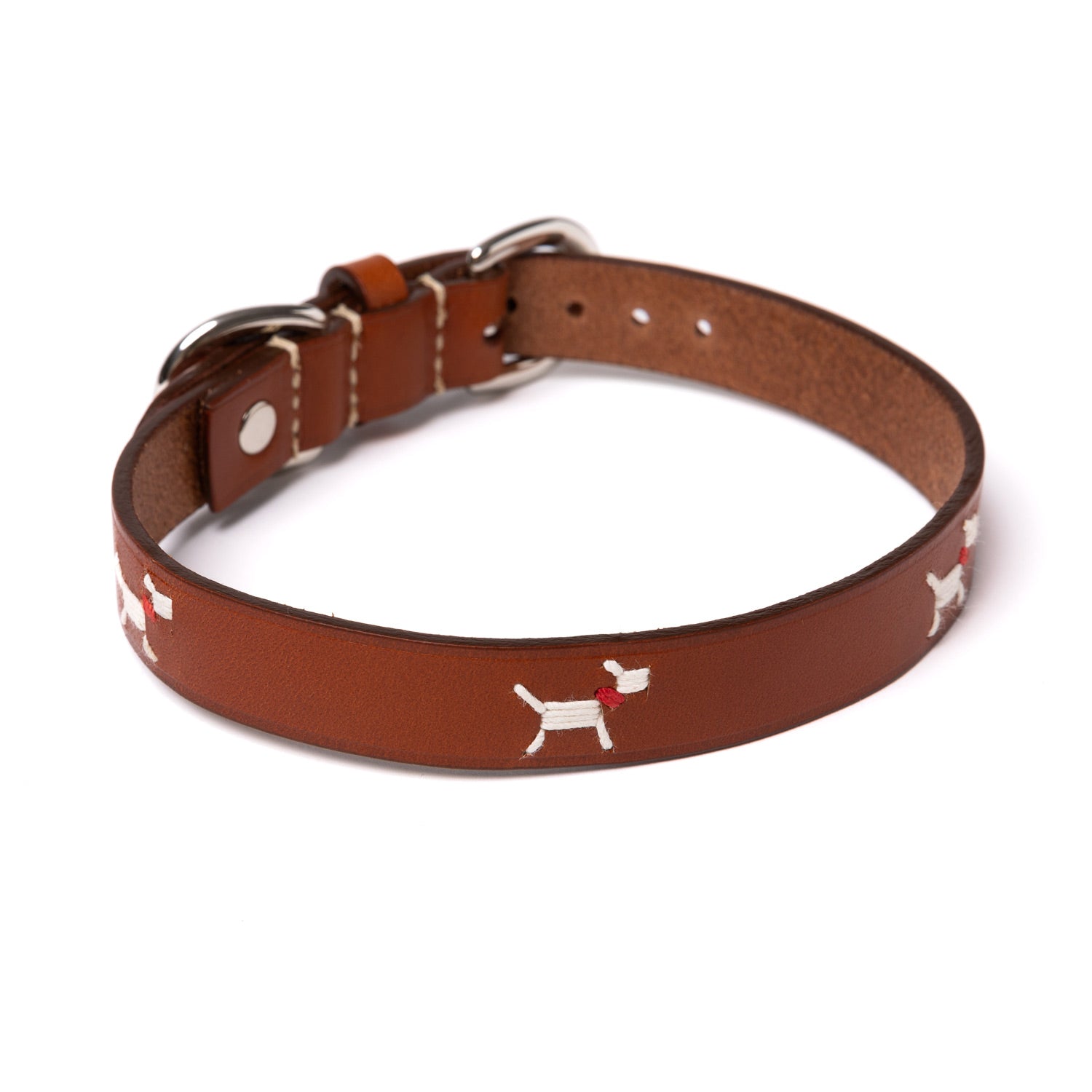 Ein Hundehalsband aus dem Atelier von Felisi, das zu einem wunderbares Accessoire für Ihren kleinen Hund wird. Sattelleder in Mittelbraun mit dekorativem Stitching und der unverkennbaren Felisi Verarbeitung erzeugt eine lange Lebensdauer.